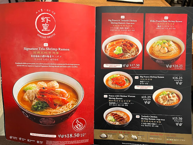 For our main dishes, we ordered two of the Prawn with Chicken Wonton Shrimp Ramen, the Signature Trio Shrimp Ramen, and Prawns with Chicken Wontons Tossed Ramen.
